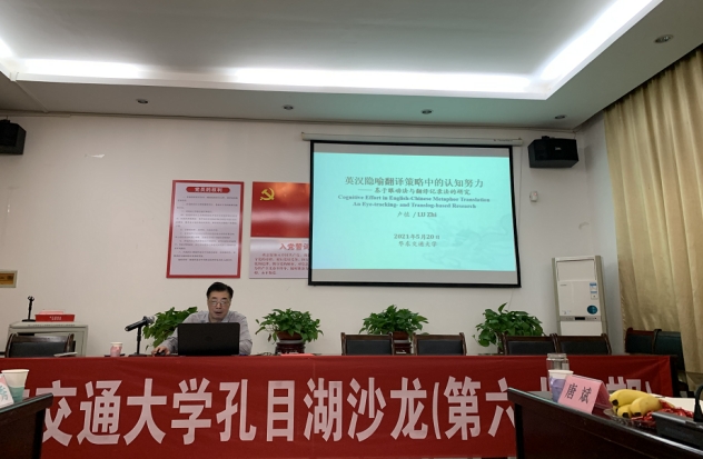 卢植教授做了题为“隐喻翻译中的认知努力:基于眼动法与翻译记录法实验研究”的讲座,介绍了眼动实验研究过程、设计等。得出了策略M1-M2比策略M-P花费更多认知努力,这种结果的原因可能是翻译策略M-M更直接,策略M1-M2和M-P较间接。