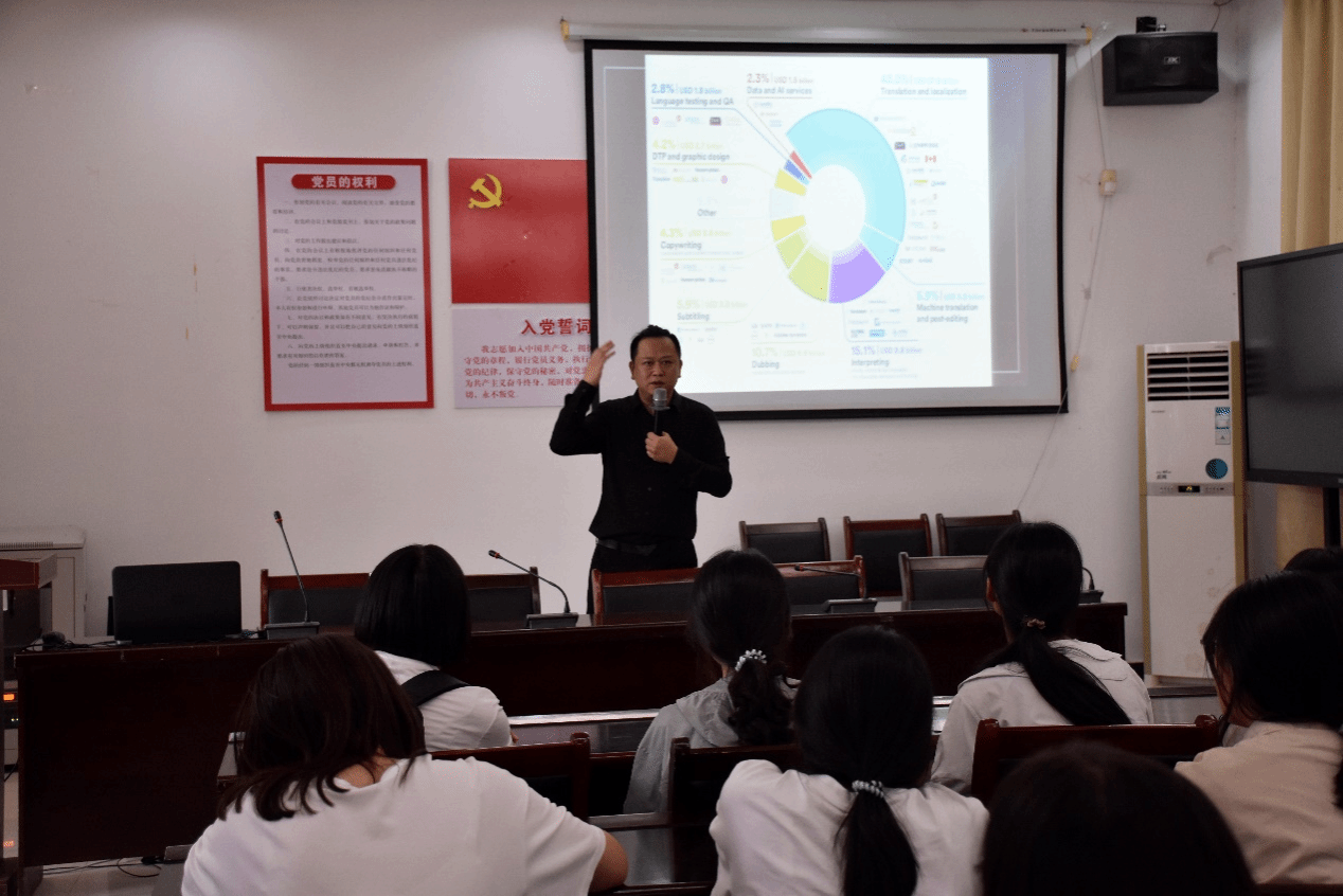 在本次讲座中,徐徐先生幽默诙谐的语言和通俗易懂的讲解方式激发了同学们的极大兴趣。这次讲座不仅为学生搭建了一个与优秀企业家面对面沟通交流的优质平台,帮助学生深入了解外语行业的发展趋势,开启更广阔的就业发展路径,还有利于学院进一步深化校企合作,全面提升人才培养质量,打造新时代外语人的成功未来。