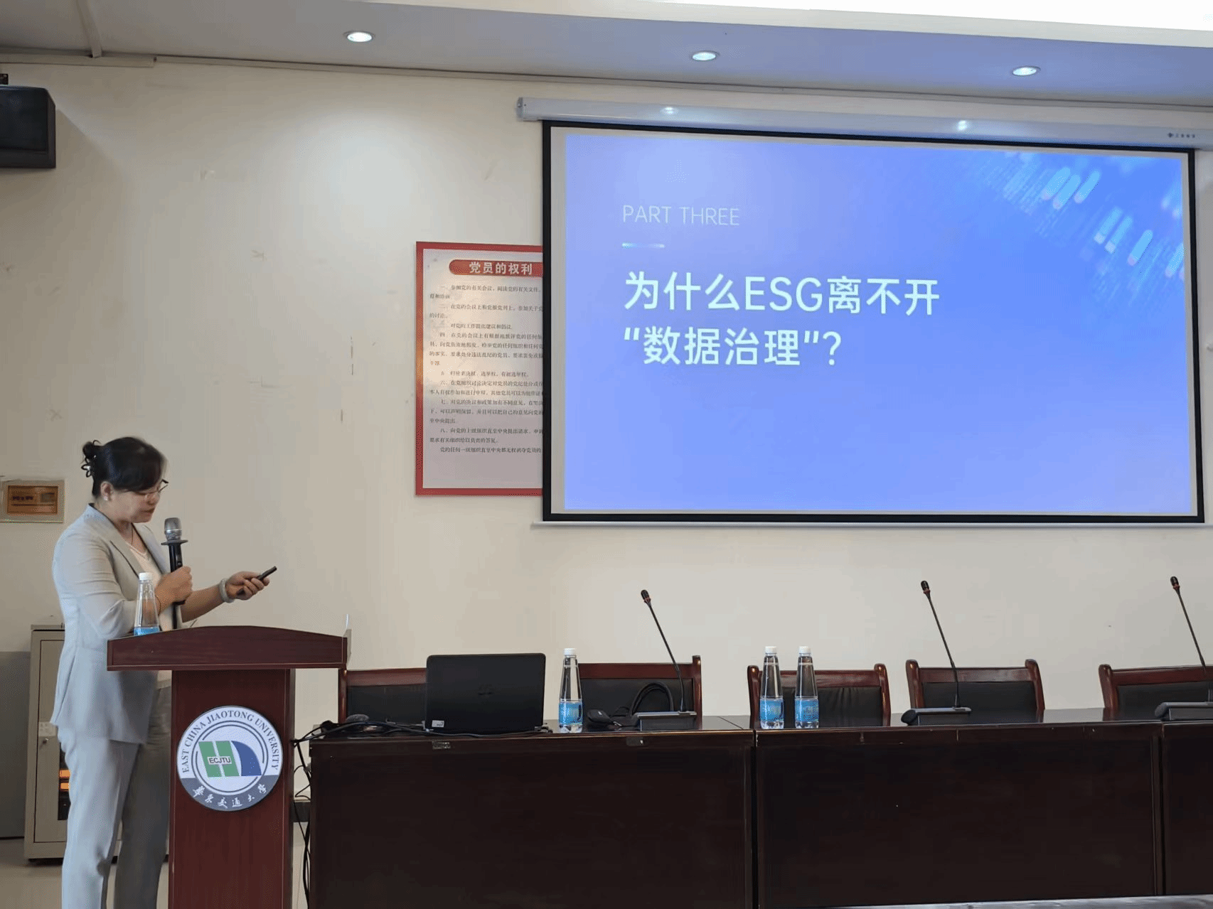 讲座最后,张丽女士以铿锵寄语激励学子:"执数据之笔,铺规则为卷,架语言之桥,载'交大方案'驶向全球治理坐标系!"这昭示着MTI人才的使命——在跨境数据核验、多语种ESG披露等前沿阵地,用严谨的规则解码能力和文化转译智慧,将中国实践熔铸为国际标准。让我们共同见证:世界治理的演进长卷中,"华东交大基因"必将镌刻下璀璨篇章。
