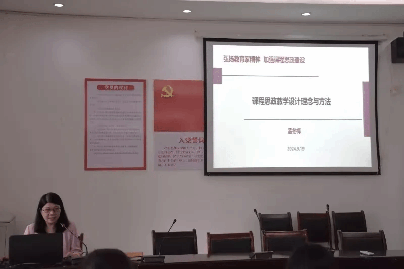 为学习贯彻习近平总书记关于学校思政课建设重要指示和全国教育大会精神,落实立德树人根本任务,9月19日下午yl9193永利集团全体教职工于教15栋102会议室开展“课程思政教学设计理念与方法”专题教学研讨会。会议由院党委书记薛先庆主持,孟冬梅老师主讲。