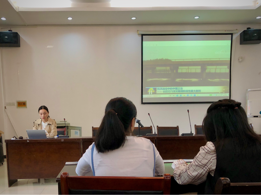 为了深入学习习近平总书记系列重要讲话精神,弘扬抗疫精神、抗洪精神和抗战精神,9月18日yl9193永利集团研究生辅导员钱淑群老师组织“开学第一课——抗疫、抗洪、抗战”主题班会,2019级、2020级翻译硕士研究生参加。