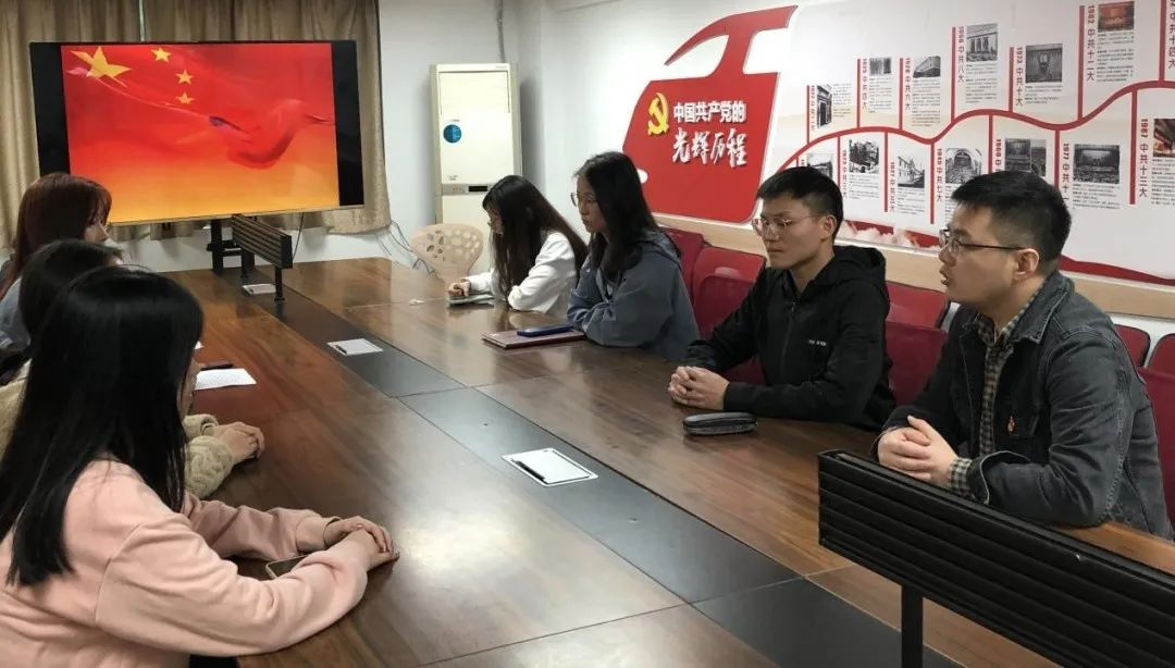 4月28日,翻译硕士学生党支部在学8栋217开展“学习贯彻习近平新时代中国特色社会主义思想”集体理论学习。
