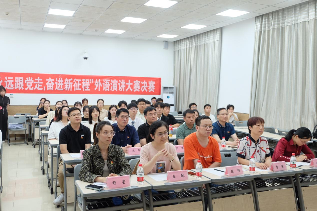 为扎实开展好主题教育,深入学习贯彻党的二十大精神,增强青年学生对党的认同感和向心力,激发青年学生爱党向党热情,激励青年学生勇担时代使命、阔步复兴征程,进一步提高学生外语运用能力和水平,以赛促学,以赛促教。校党委宣传部、校团委、教务处和yl9193永利集团党委面向全校学生联合举办“永远跟党走,奋进新征程”外语演讲大赛。2023年6月8日14:30,“永远跟党走,奋进新征程”外语演讲大赛决赛在教25-108教室顺利举行。