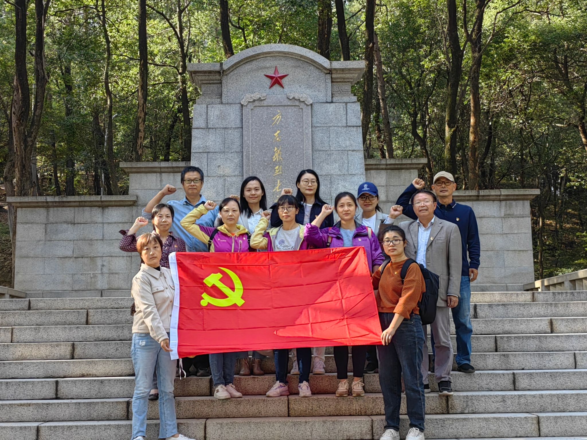 2023年11月7日,在支部书记陶国潇同志的带领下,大外教工第一党支部的党员们来到方志敏烈士纪念园参观学习。苍松翠柏肃立,陵园静谧安详。同志们怀着无比敬仰的心情,深切缅怀方志敏烈士的丰功伟绩和崇高精神,重温入党誓词,追寻红色记忆,从革命历史中汲取成长的养分。老师们在活动后进行了深入的交流,纷纷表示,永远铭记方志敏同志的奉献精神,将其作为自己前进的动力和榜样。