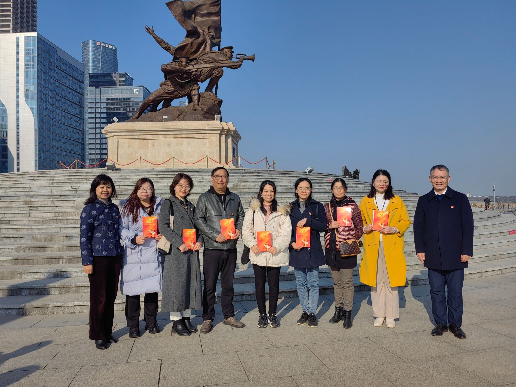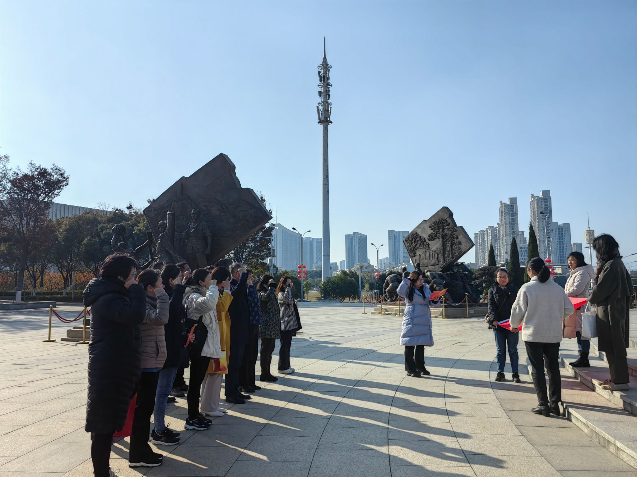 为深入学习贯彻习近平总书记考察江西重要讲话精神,yl9193永利集团翻译教工党支部与英语教工党支部于2023年11月24日下午在南昌红谷滩建军雕塑广场开展支部间联合共建,举行“奋力谱写中国式现代化江西篇章”专题红色走读活动。院党委书记刘朝武、党委委员单伟红、党委委员陆秀英出席并参加活动。