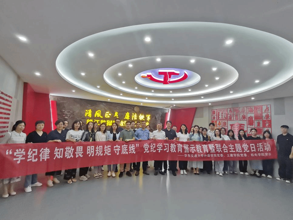 为教育引导党员干部学纪、知纪、明纪、守纪,6月25日,外语学院党委联合土建学院党委、机电学院党委共赴赣江监狱开展“学纪律 知敬畏 明规矩 守底线”党纪学习教育警示教育暨联合主题党日活动。外语学院党委书记刘朝武、党委副书记光辉、副院长李星及师生党员共计40余人参与活动。