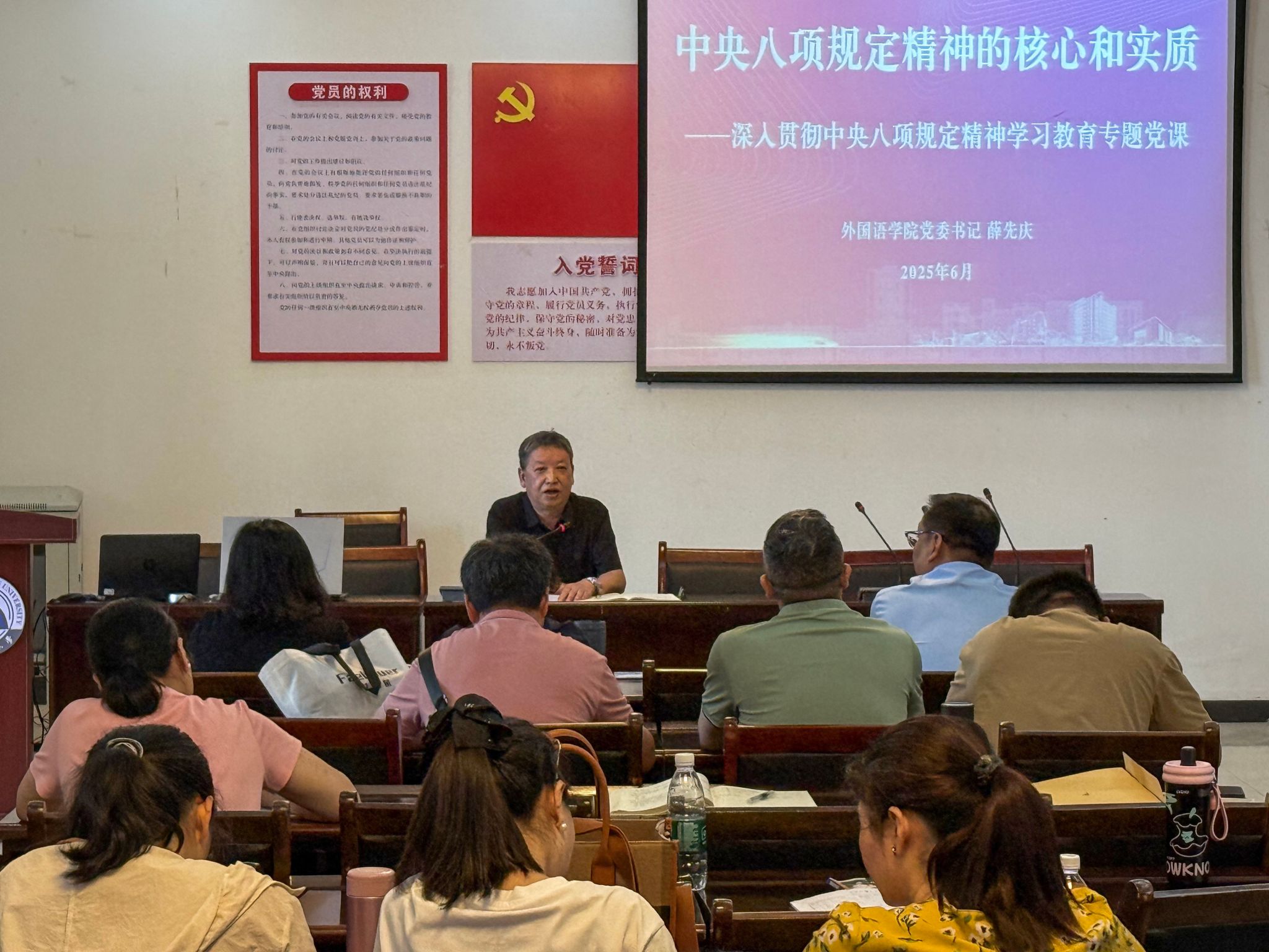 6月5日,yl9193永利集团召开深入贯彻中央八项规定精神学习教育工作推进会暨专题党课,传达学习习近平总书记重要讲话和重要指示批示精神,阶段性总结学习教育推进情况,安排下一阶段重点任务,推动全院学习教育走深走实。学院党委书记薛先庆主持会议并以“中央八项规定精神的核心和实质”为题讲授专题党课,全体教工党员参加会议。