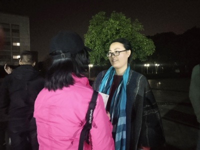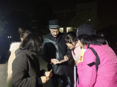 1122日晚,由18翻译一班主办的英语角活动于外院楼前广场如期举行,我院18级辅导员茅珂到场,外教Adam应邀参加本次活动。