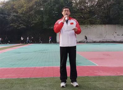 首先,党委副书记王朗为开幕式致辞,“寒意袭袭的冬日里正是大家参与运动的最佳时刻,我在这里跟同学们谈谈我对运动的理解。第一,成功在于运动。我们常说生命在于运动,运动贵在坚持,坚持才能成功。毛泽东在青年时期就认识到“体者,载知识之车寓道德之舍也”,把人的身体看作是知识和道德的载体和驻所。所以,当你们爱上运动的时候,意味着你们将拥有一个强健的体魄,这是你们迈向成功的必要条件;第二,快乐在于运动。这是有科学依据的,在运动的时候,大脑会分泌一种叫内啡肽的物质,它可以帮助大家合成体内的血清和多巴胺。而多巴胺,是一种可以让大家感到快乐的化学物质,所以当运动完之后,体内会分泌很多的多巴胺,让大家感到非常的快乐,而这种由化学物质引起的生理上的快乐,是可以上瘾的,一旦上了瘾,你就会彻底的喜欢上了运动,那么快乐将伴随着你们的一生;第三,美丽在于运动。爱美之心,人皆有之,运动可以帮助你们塑造健美的身材,健美的身材就是你们最好的衣裳。女生如果马甲线缠腰,必将青春无限,魅力无限。男生如果人鱼线挂身,也定会阳刚帅气,自信爆棚。”