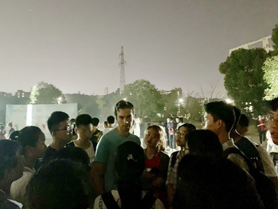 1010日晚,由我院18级国贸一班主办的英语角活动在外院小广场顺利举行。AmineLaQueteDrew三位外教应邀参加。