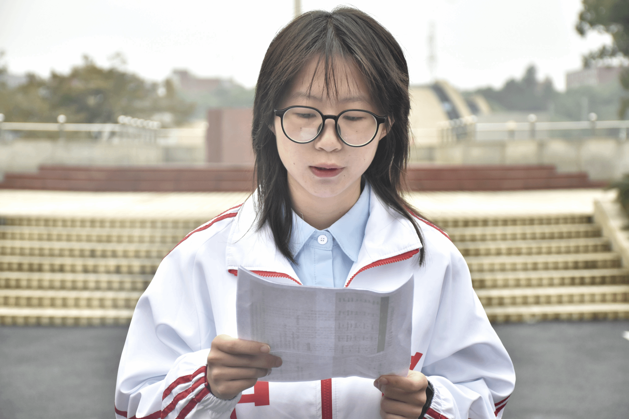 升旗仪式过后,24葡萄牙语白晓铃同学作为学生代表进行国旗下的演讲。