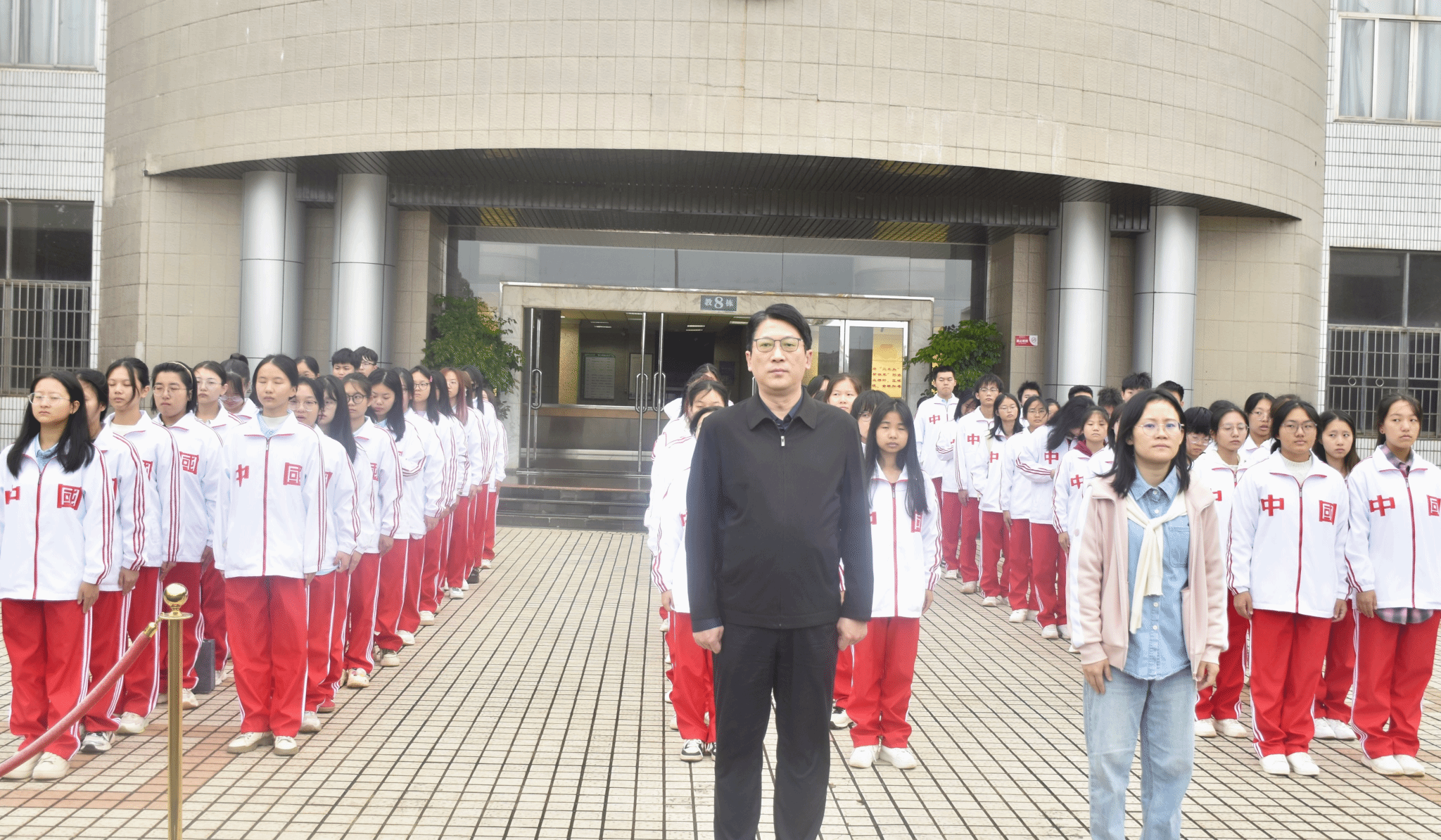 庄严隆重的升旗仪式在教8栋前举行