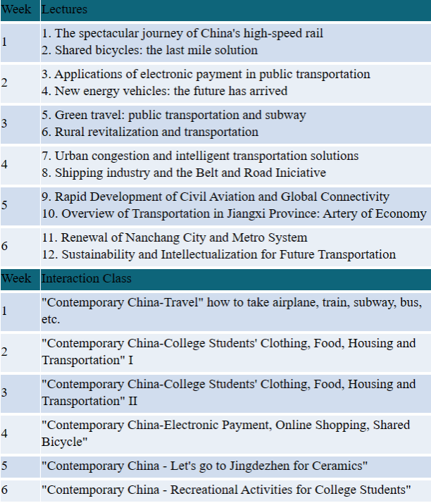 1. Twelve online Lectures on Contemporary Chinese Transportation by a team of Chinese teachers;