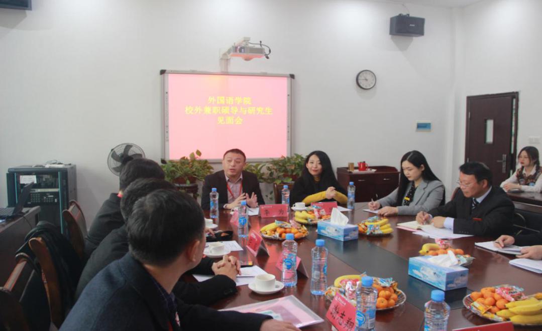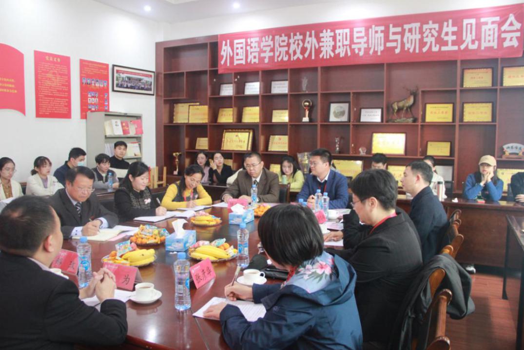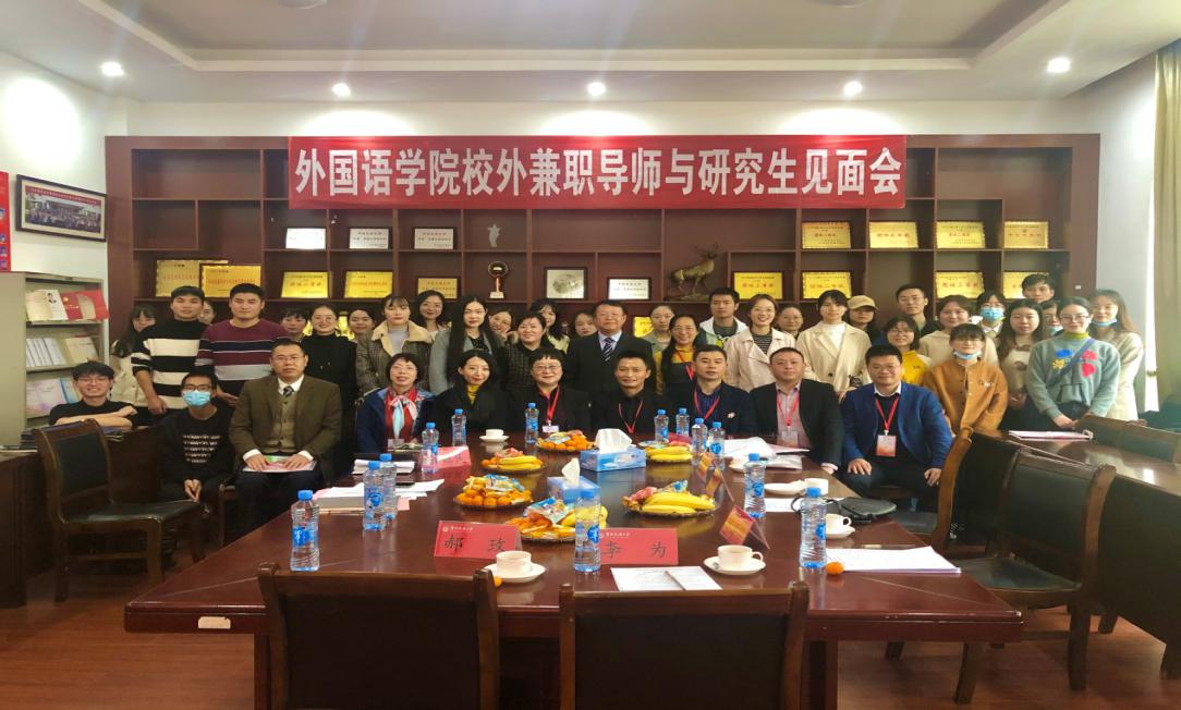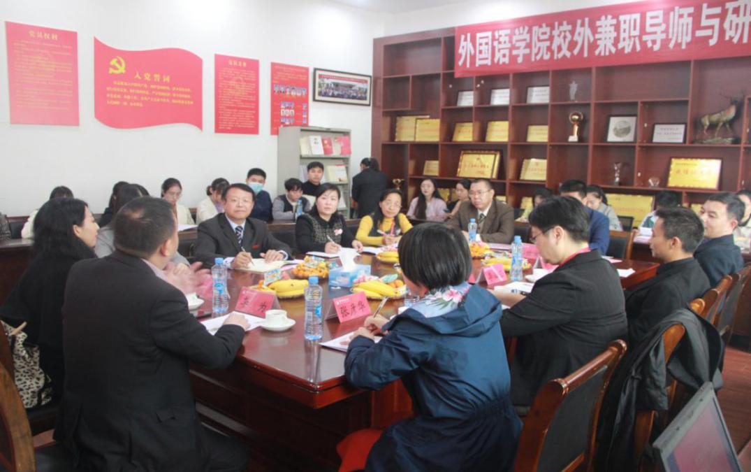 2020年11月21日,江西国际经济技术合作公司总经理李必亚等8位校外兼职导师应邀参加yl9193永利集团20周年院庆活动,与外院研究生在学院308会议室相聚一堂,为外语学院发展及研究生培养建言献策。会议由外语学院副院长袁平华教授主持,MTI中心主任陆秀英教授、副主任樊梦博士、研究生秘书钱淑群老师及2019级、2020级研究生参加。
