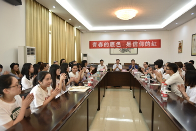 青春有梦敢拼,青春的底色是信仰的红。八点半左右,张玉清和同学们走进yl9193永利集团102教室,参加“青春的底色,是信仰的红”主题团日活动。在活动开始前,张玉清问起了班级情况,在了解到全专业有57名同学时,他开心地介绍自己道:“那我就是58号,你们的玉清同学。”并分享了自己的学习经历。他感慨大学时光对自己的深远影响,勉励同学们向更高更远的目标出发。师生们还共同观看了纪录片——《厉害了,我的国》,并交流了自己的观影感受。