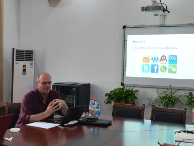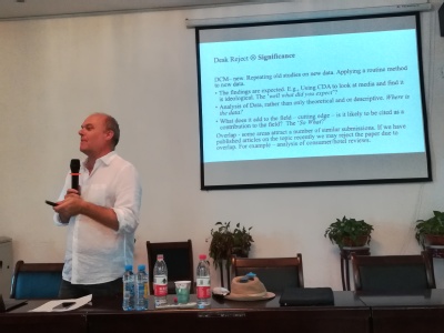 523-26日,澳门大学传播系教授Richard Fitzgerald受邀莅临我院讲学,为我院师生开展系列讲座。我院教师、各年级研究生、本科生参加讲座。本次讲学主题丰富,“因材施教”,523日至526日上午面向本科生开展了“电影研究”主题讲座;523日至526日下午面向我院教师开展了“期刊出版”“语篇分析”“中国社交媒体研究”主题讲座;526日上午面向我院MTI研究生开展了“期刊研究”主题讲座。