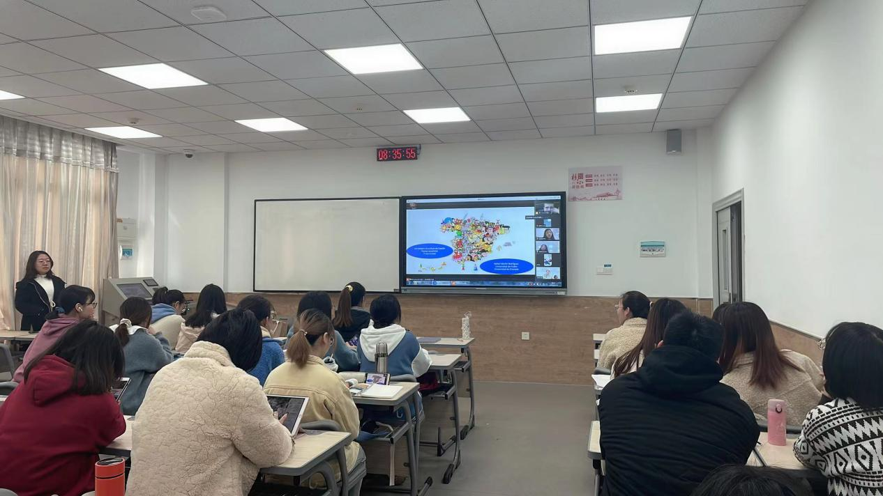 受疫情影响,本次交流会以线上的形式开展,西班牙语任课教师黄冰,18级、19级英西复语专业全体同学参加会议。