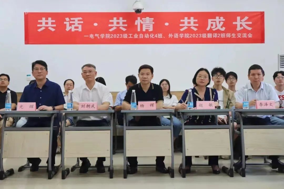 为加强大学生思想政治教育,提升思政育人实效,畅通校领导与学生沟通渠道,了解学生所思所想所盼。6月13日下午,电气学院工业自动化2023-4班、yl9193永利集团翻译2023-2班共同召开“共话·共情·共成长”主题班会。副校长杨辉,电气学院党委书记赵敏、院长李泽文、党委副书记刘修财,外语学院党委书记刘朝武、党委副书记光辉以及学工办负责老师一同参与本次主题班会。