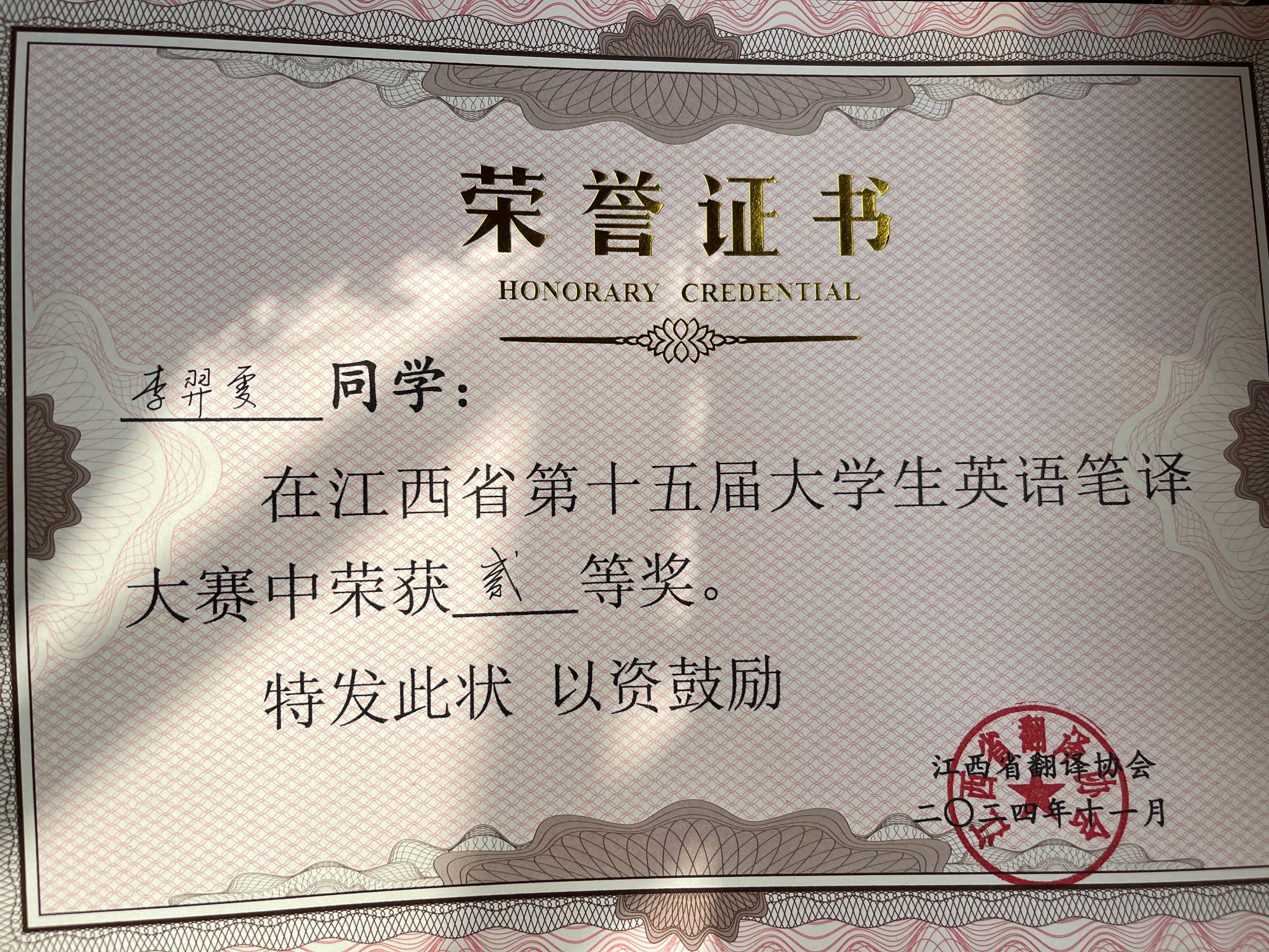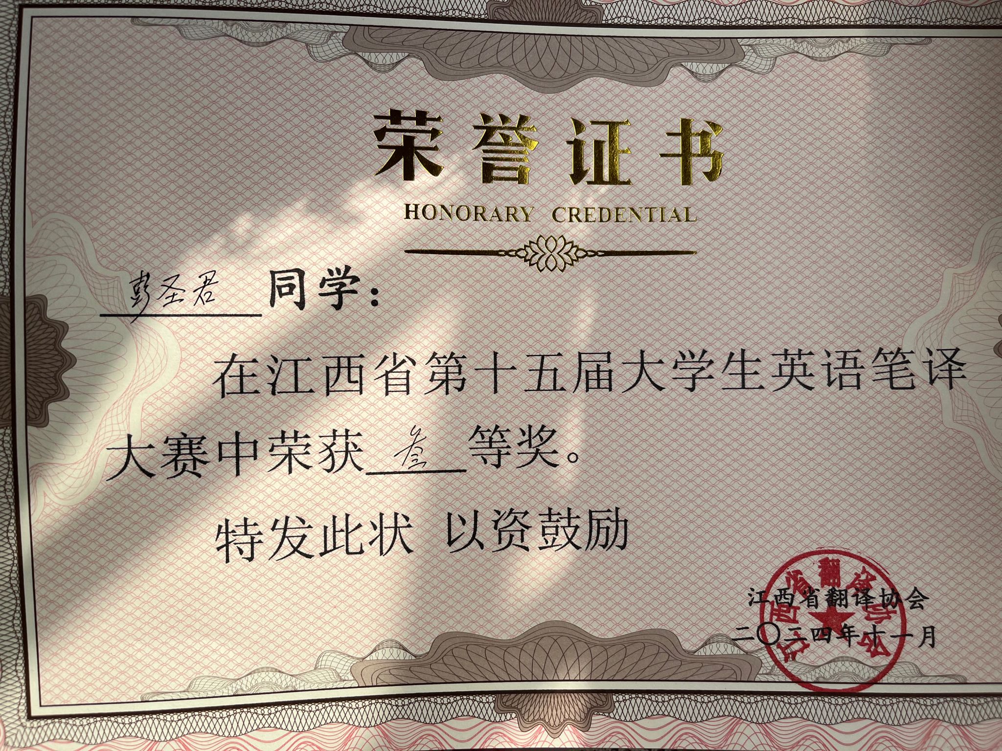 本次笔译大赛共有来自省内十几所高校共计245名选手参与其中,其中我校学子23级MTI李羿雯荣获省级二等奖;英语(国际贸易)专业学生余子胜豪,MTI学生陈萍萍、胡熊彬、黎明优、彭圣君荣获省级三等奖。