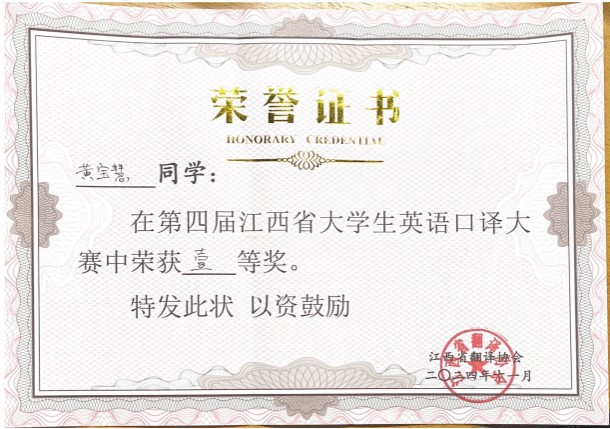 2024年11月2日至3日,第四届江西省大学生英语口译大赛及第十五届江西省大学生英语笔译大赛于南昌大学前湖校区慧源楼顺利举行,来自省内十几所高校的近300名选手参加,充分展现出了优良的翻译水平和双语转换能力。经过激烈角逐,我院九名同学在众多选手中脱颖而出,勇创佳绩。