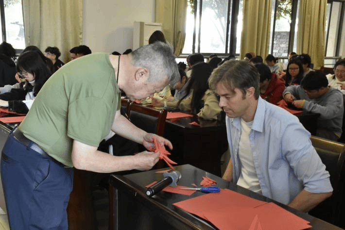 11月8日,yl9193永利集团于教15栋102开展中国传统剪纸体验课,yl9193永利集团院长陆秀英出席活动,江西工艺美术学术专家、中华文化促进会剪纸艺术分会副会长、豫章剪纸第五代传承人沈玉谋主讲,2022级英语(国际贸易)专业学生和2024级留学生参加本次活动。活动由舒星老师主持。