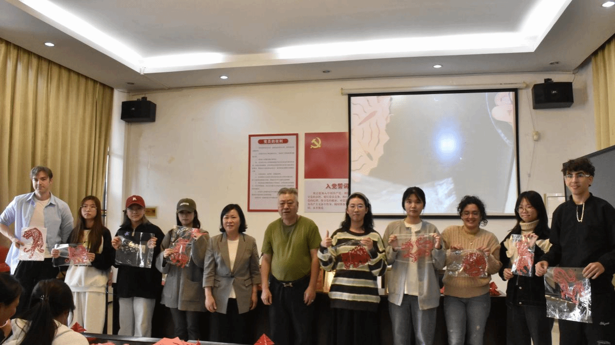 随后,沈大师为荣获优秀剪纸作品的学生送上了精心准备的十二生肖剪纸礼品,并为获奖的留学生送上了代表幸福美好的“福”字剪纸,以鼓励他们在剪纸艺术学习与创作中的优秀表现。