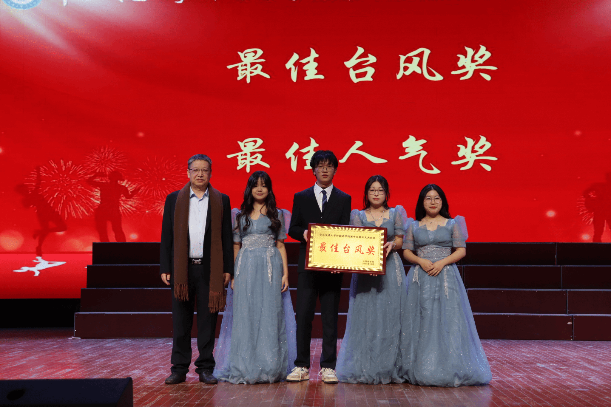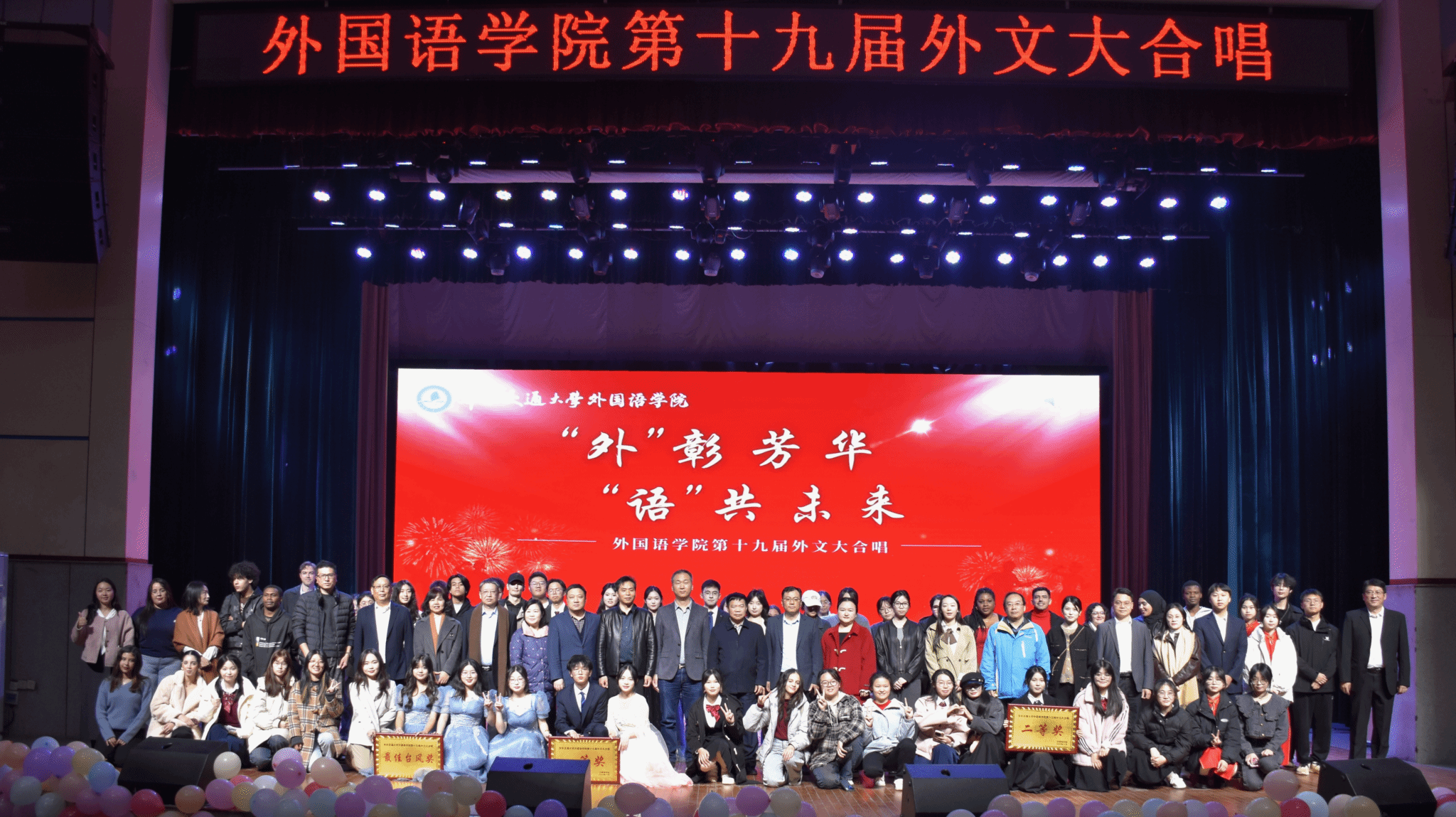 歌声缓缓落下,掌声经久不绝。一场视听盛宴,更是一次心灵的旅行,一段文化的寻觅。外文大合唱虽已收官,但其所承载的外语魅力,青春活力和团结奋进的精神火种,早已如燎原之势在外院同学的心中蔓延生长,激励着新一届学子们在探索外语传播文化的漫漫征途上不忘初心,砥砺前行。让我们怀揣着对往昔的美好回忆和对未来的殷切期待,期待下一届外文大合唱的启幕,也祝每位同学心怀热爱,向阳盛开。