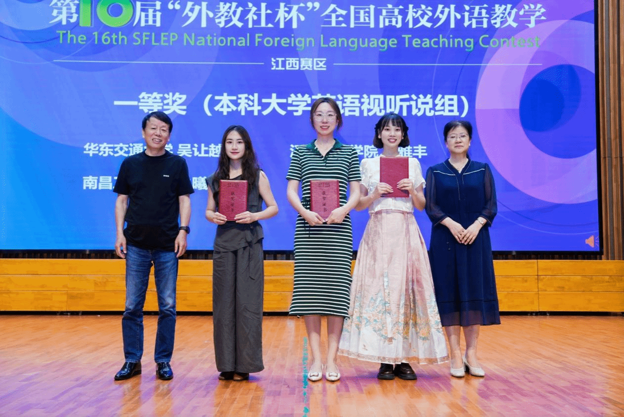 我院青年教师吴让越获视听说组一等奖(排名第一),将代表江西省参加全国比赛。舒星老师获综合组三等奖,邹健老师团队获微课组二等奖。