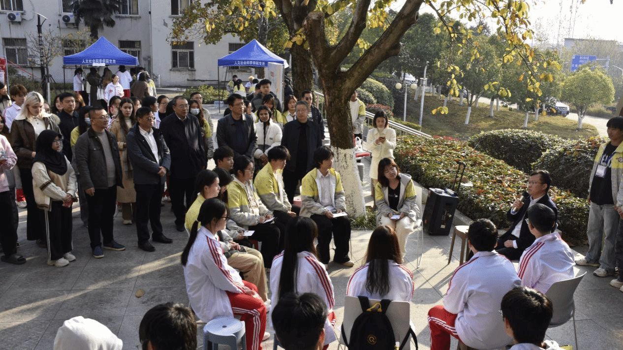 活动接近尾声,老师、同学们一同合影留念。相机定格的瞬间,老师们温和的笑容、学生们灿烂的神情,与横幅上“‘宪’入文心,‘法’润青春”的字样相映成趣。这张合影里,有师生同心的温情,有中外学子的交融,更有法治精神在青春里扎根的生动印记。