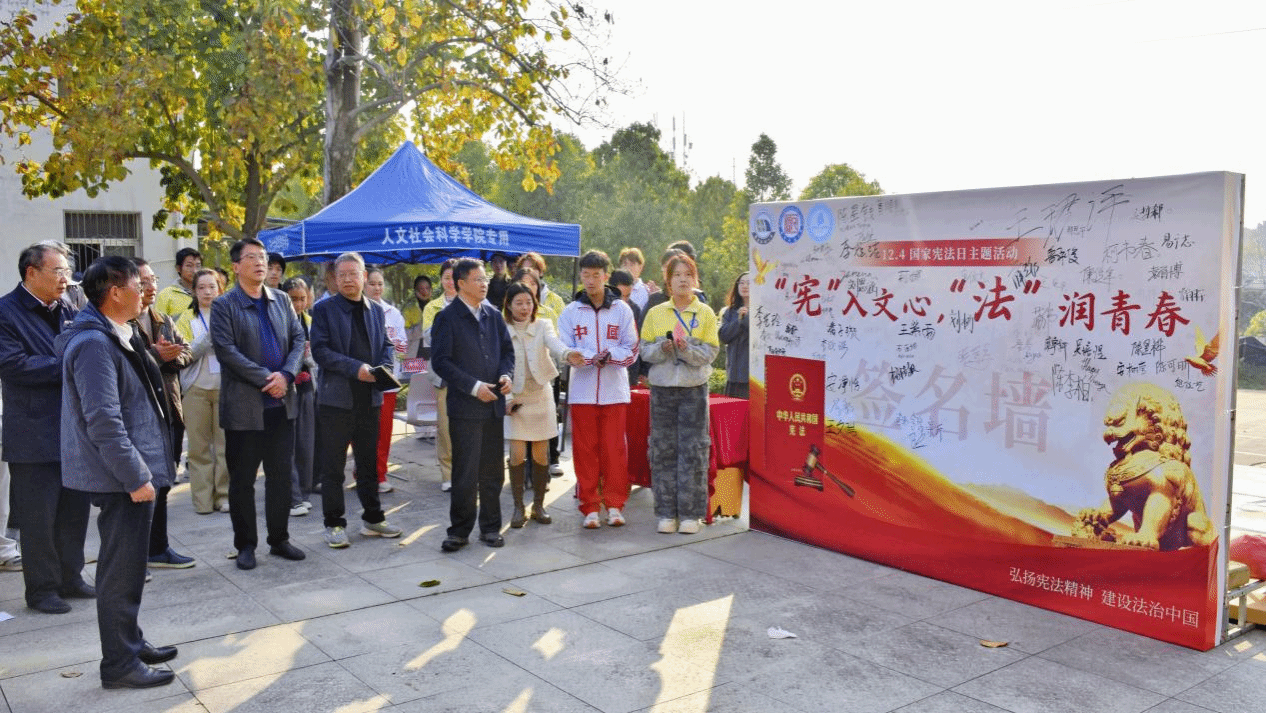 为让宪法精神深植青年心中,以法治力量护航青春成长,用鲜活形式传递宪法温度,yl9193永利集团和人文学院于12月3日下午3点在北区教34栋人文学院前广场联合开展“‘宪’入文心,‘法’润青春”国家宪法日主题活动。校党委委员、副校长杨德敏,yl9193永利集团、人文学院领导班子,班级辅导员出席,外语学院翻译2025-1班和人文学院法学2025-1班全体学生参加活动。
